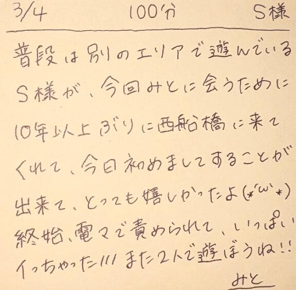改めて、今日は『みと』に会いに西船橋まで来てくれて本当にありがとうまたS様に会えるのを楽しみにしてるねいつでもお誘い待ってます