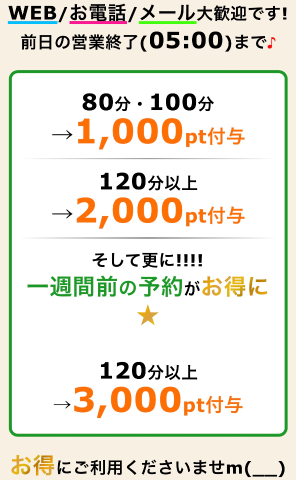 事前予約』しておいて貰えると、日付やコース時間など確実に選べてオススメです