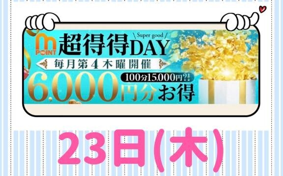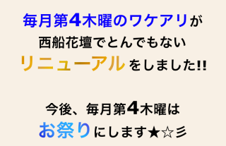 本日、第4木曜日イベントです今日、西船花壇で遊んでくださるお客様、ぜひ、このイベント使ってください★重要!!★イベントは、完全申告制なので、予約受付時に、「ワケアリデーのイベントで!」と、忘れずにご申告ください。申告ないと、適用されないのです本日の私は。★12時〜16時15分くらい★空いてます皆様、本日も、よろしくお願い致しますご予約いただいたお客様、ありがとうございます。楽しみです