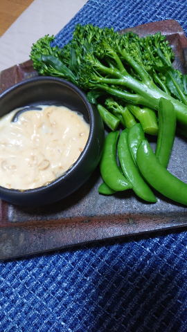 スティックブロッコリーとスナップえんどうの味噌マヨ