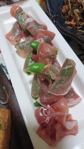 スナップエンドウの生ハム巻き