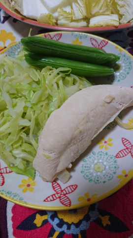 鶏ササミとキャベツとスナップエンドウでした![]()