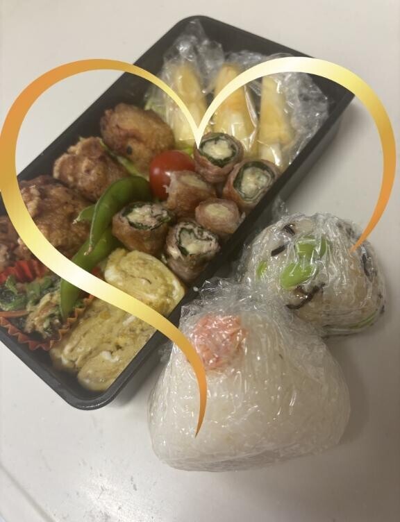 受験生、今日は、2日目の試験です頑張って欲しい今日のお弁当は、おにぎり弁当にしました野菜とえのきの肉巻きと卵焼き、きんぴらさん、唐揚げ、りんご枝豆と塩昆布のおにぎりと鮭おにぎり午後の面接ガンバレ