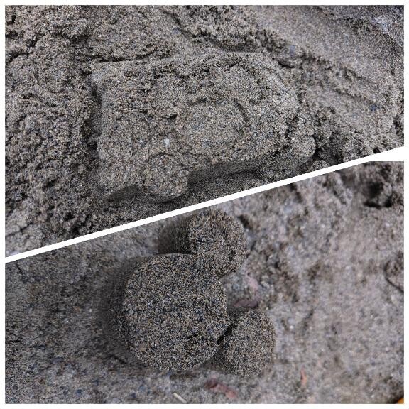さくらは2児の母昨日ディズニーランドで砂場遊びセットを買いましたので、今日さっそく遊びましたさくらもミッキーバスとミッキーを作りました可愛い