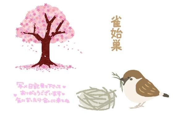 昨日3月20日は春分の日でしたねこれからだんだんと日が伸びていきますね二十四節気 『春分』七十二候は 『雀始巣』そういえば最近、雀は見かけないですねぇ