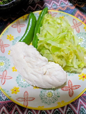 鶏ササミとキャベツとスナップエンドウ