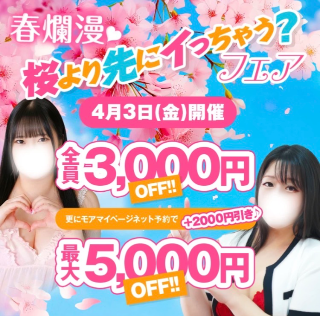4月3日(金)桜満開まで体も爛漫に乱れちゃうッ全員3000円引きで春の訪れを一緒に感じよう