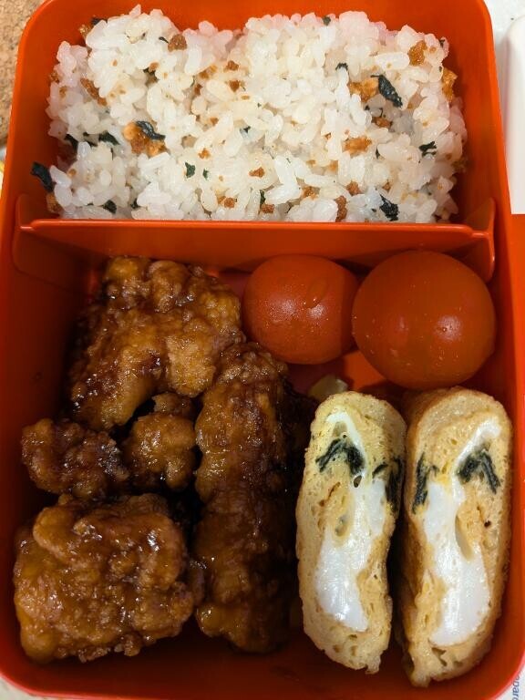 気付けば、明日までのお弁当給食って助かるブロッコリー切らしてたのよー。唐揚げの下にコーンを敷いたよ。