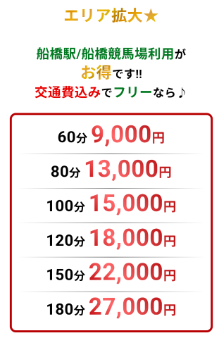 出張可能エリア:西船橋近郊発〜千葉・栄町・幕張・市川・習志野・松戸・新松戸