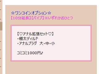 ワンコインオプションとは別ですが、リアルディルドとプラグ全部で1000円はお得だと思う