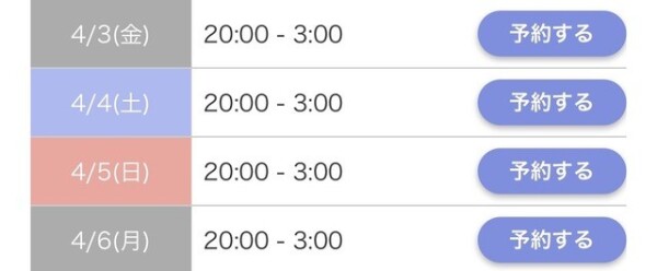 本日出勤 20:00〜翌03:00