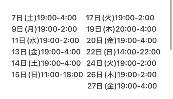 日~木:営業時間2:00/金土祝前日:営業時間4:00