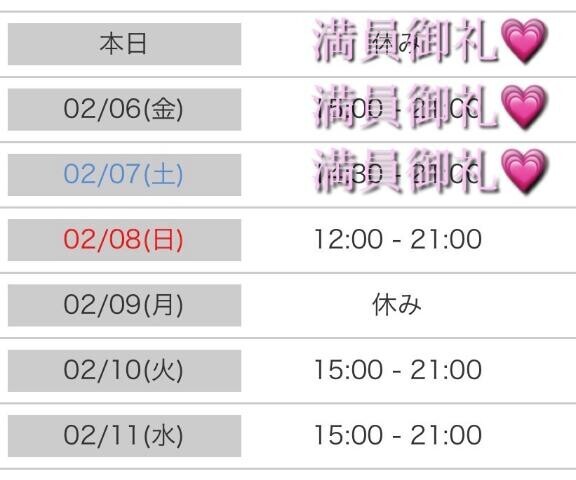 本日出勤 15:00〜21:00