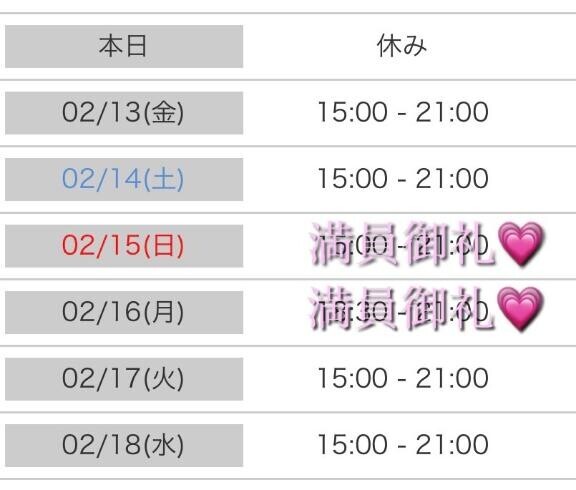 本日出勤 15:00〜21:00