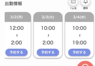 本日出勤 12:00〜翌02:00