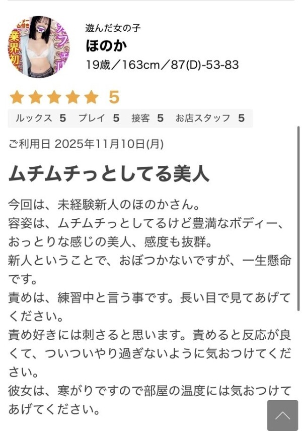 初めての経験で慣れないこともありましたが、その中でも優しく接していただいたスタッフさん、そしてこんなほのかを選んでくださったお兄さん♡