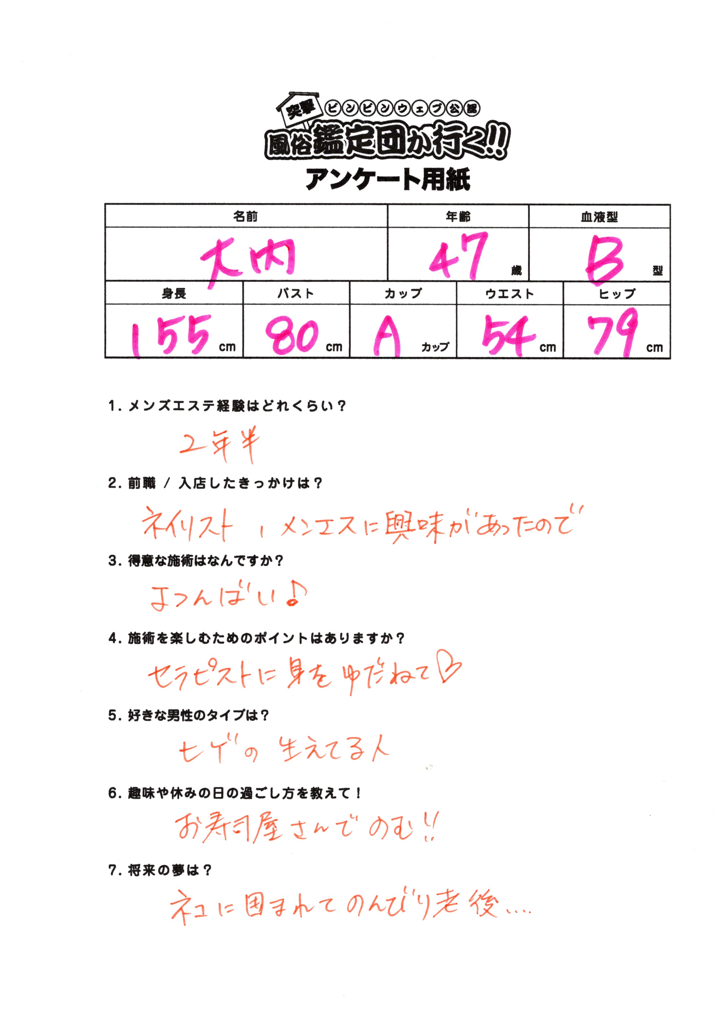 大内(47)T155 B80(A) W54 H79