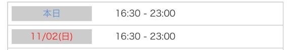 本日出勤 16:30〜23:00