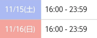 本日出勤 16:00〜翌00:00