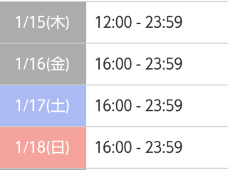 本日出勤 12:00〜翌00:00