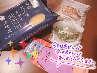 ??今日も会いに来てくれてありがとうございます?早くお店に着いてくれて更に10分追加で延長してくれて嬉しかった???今日も沢山お話出来て、色々と共感の嵐だったよ?食にこだわりが無くてご飯決めるの大変との事で、今晩のご飯はなに食べるか私が決めちゃった?次もご飯決めるね??来週も会えるの楽しみに待ってます?美味しい&素敵な差し入れもありがとうございました??メタモンの靴下まで嬉しい???