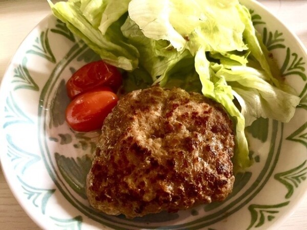 普段はオーソドックスに玉ねぎパン粉たまごを繋ぎに入れるけど今回はそれらが入ってなかったので上手く焼けるかドキドキでしたが杞憂に終わって安心\(^o^)/