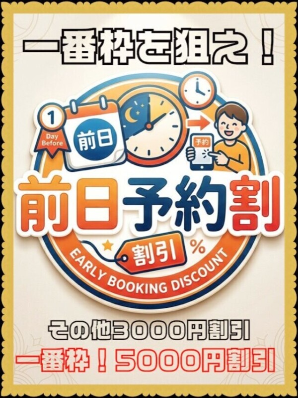 前日予約割!最大5000円割引!