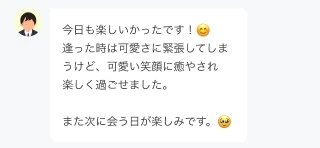 それに、いつ会ってもMくんは初々しくて、ドキドキ💓人見知りって言ってたけど、ずっと一緒に笑ってたし…その笑顔を見るたびに安心して、幸せな気持ちになったよ🥰