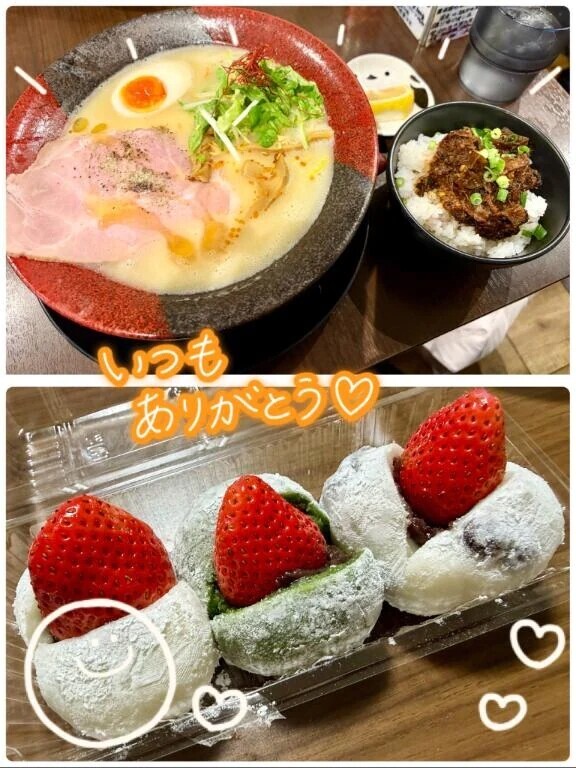 ラーメンも連れていってくれて嬉しかったよ🍜✨それに、今年もいちご大福を一緒に買いに行って食べられたこと。