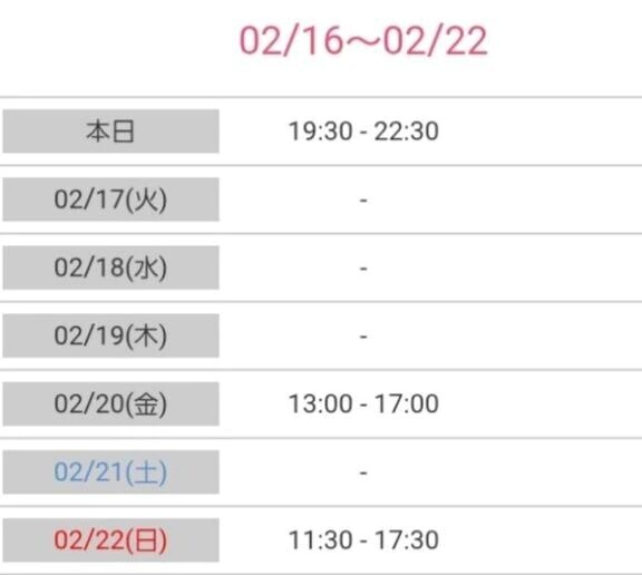 本日出勤 17:30〜22:30