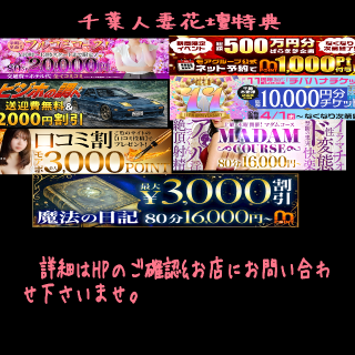 】【ビジホ特典】【千葉木更津コラボ特典】【ご新規割引】【口コミ割引】【マダムコースご対応】など良かったらご活用下さいませ。投稿日時