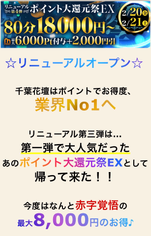 出張可能エリア:栄町 千葉 千葉中央 千葉みなと 中央区 稲毛区 美浜区 花見川区 若葉区 緑区 穴川 千葉北 幕張 海浜幕張 蘇我 浜野 おゆみ野 ちはら台 四街道 市原 八幡宿 五井 姉ヶ崎発〜幕張・稲毛・船橋・西船橋・津田沼・市川・習志野・八千代・成田・八街・富里・四街道・佐倉・木更津・市原・東金・茂原