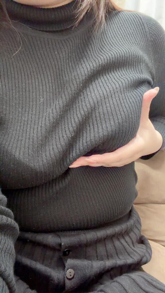お胸が強調される黒いリブニットにセクシーなスリット入りスカート