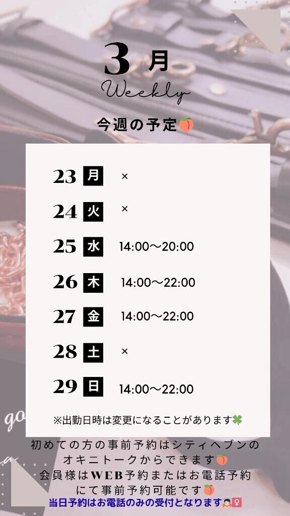 🍑3/23~3/29の予定🍑