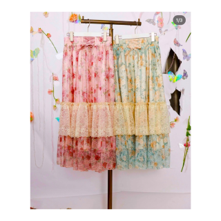 ?フラワーレースティアードスカート