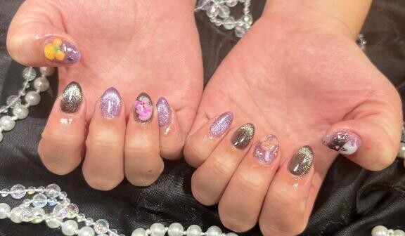 るるです?こんにちは??行く時には変えてるかもしれないけど?見てー????可愛いネイルにしたよ??1ヶ月耐えれるかびみょ?笑