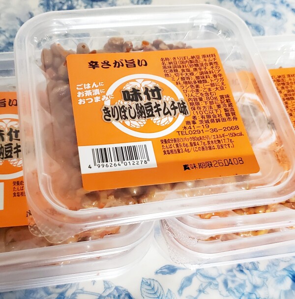 今日もスーパーでまたまた、大人買いしてしまいました(-_-;)きりぼし納豆キムチ味7パック!!!納豆メーカーの、だるま食品さんでも、きりぼしキムチ味納豆を出してはいますが、うぅぅ~ん?私的には辛みとかも無くて微妙な味でしたので、やっぱりいつもの額賀商事さんの納豆を買ってしまいます(^-^)v