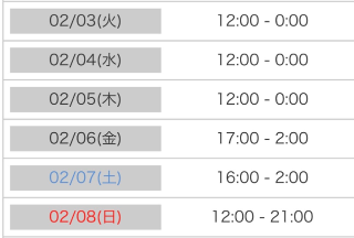 本日出勤 17:00〜翌02:00