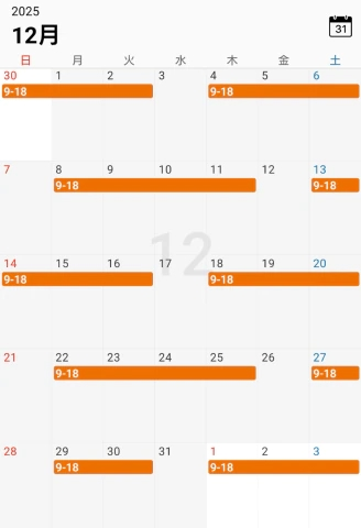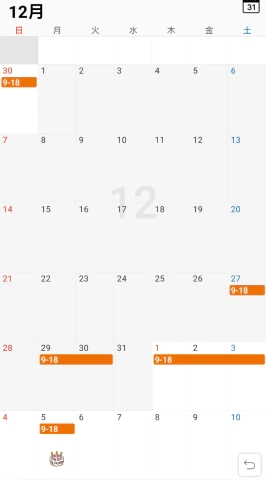 12月はお休みの日が変則的です。