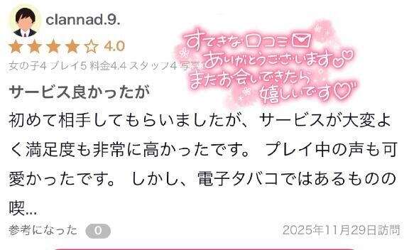 サービスもルックスも褒めていただけて、