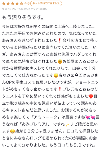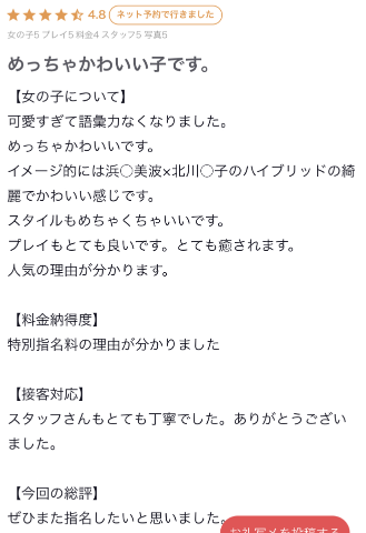 口コミを見てください!!会いに来てくれたらわかります!!!っとしか言えなくてもどかしい…?