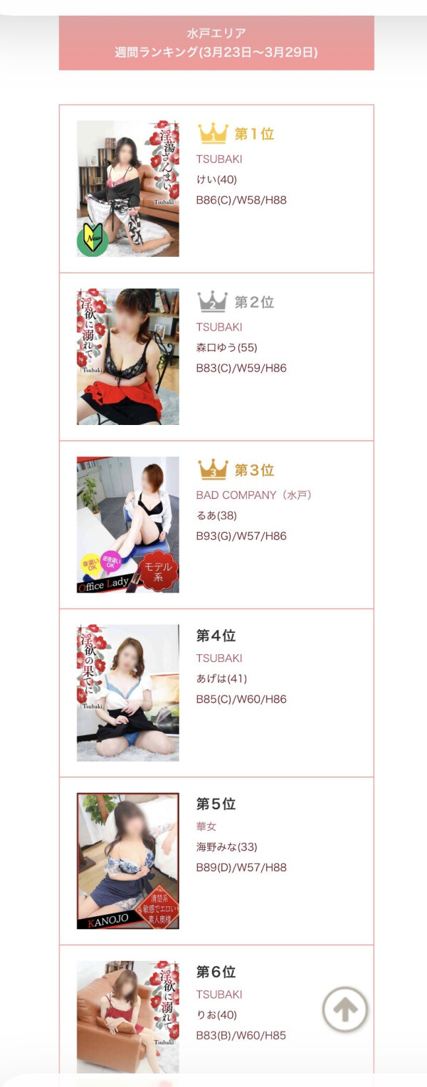 水戸エリアでもツバキ嬢ワンツーフィニッシュということで、熟女パワー健在です