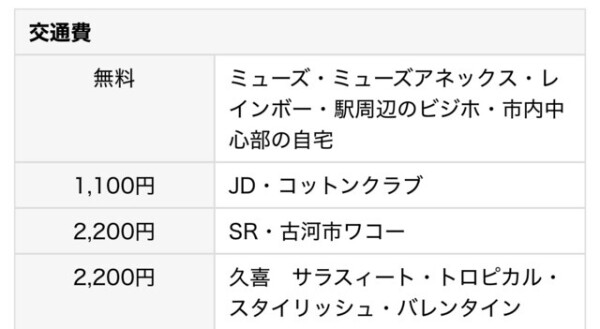 交通費無料エリア限定
