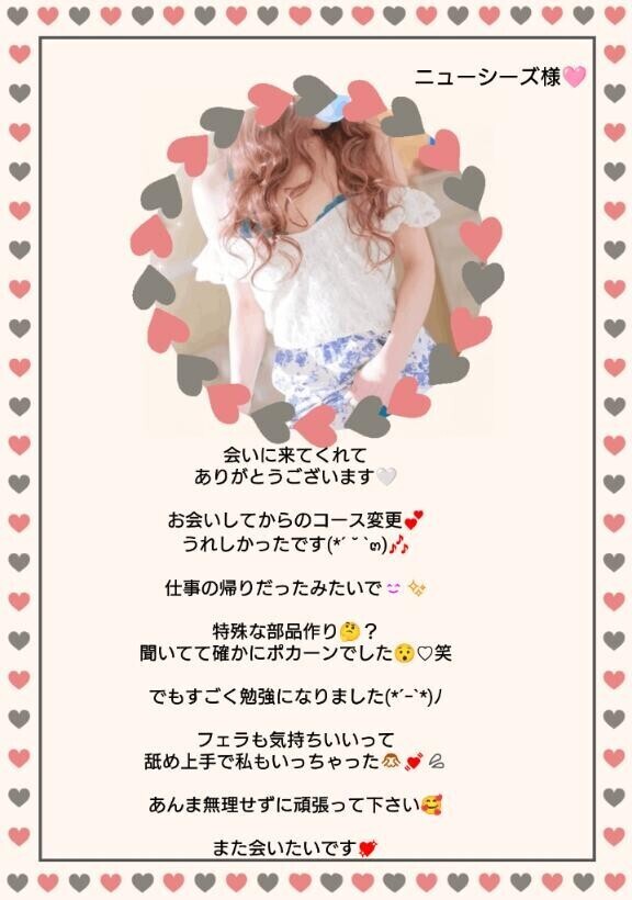お久しぶりです??少しの間お休みしていましたが、また出勤することになりました?これからは毎週出勤予定なので、ぜひ会いに来てくださいね?ご指名・ご予約お待ちしています?