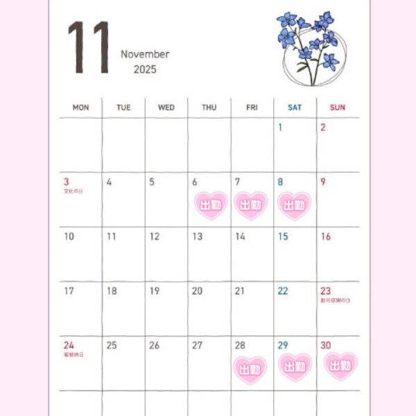 てことで11月は多めに出勤します✨✨
