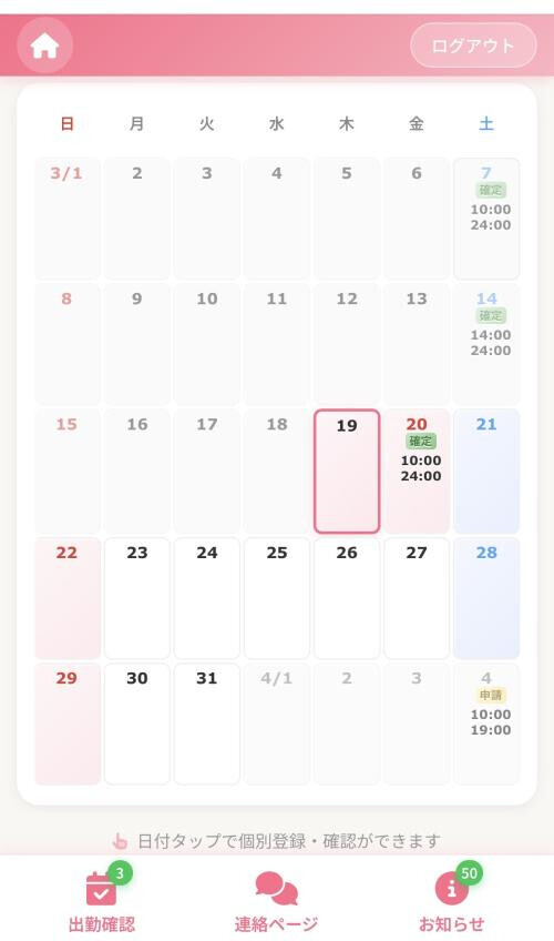 本日出勤 10:00〜翌00:00