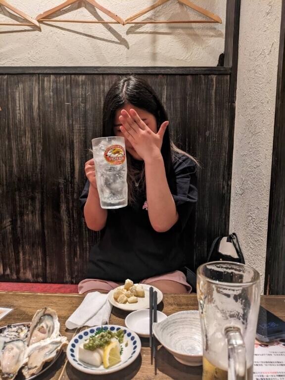 お題:居酒屋で一杯目!何飲む?に回答♪とりあず、カシスオレンジ!!!!写真のは、メガジョッキのレモサワー??こー見えて、お酒大好きで強いって言われてる笑