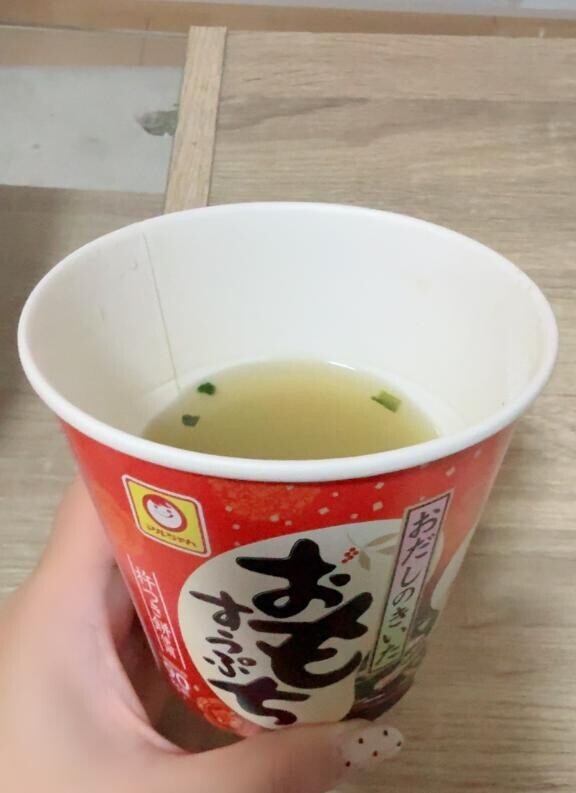 これめっちゃおいしい!!おだしのきいたおもちすうぷかわいい!笑90カロリーありがたき(ここで気にしても晩酌するから手遅れ笑)おもちっておいしよね!さむいからおだしあったまるぅー(*´-`)ほっこり