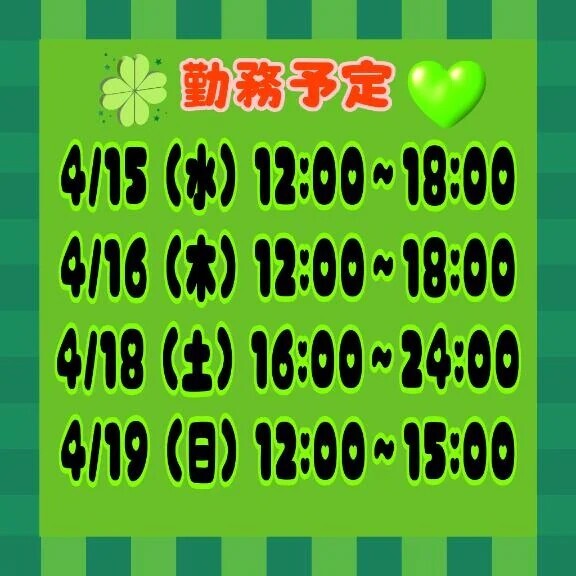 来週(明日)からの出勤予定表作りました✨