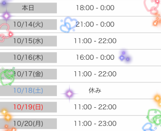 本日出勤 16:00〜翌00:00